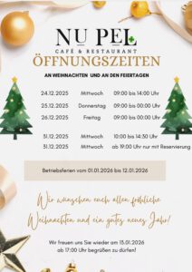 Damit du besser planen kannst, findest du hier alle Infos rund um Weihnachten – Öffnungszeiten und Menü: